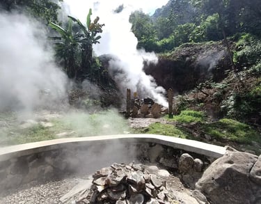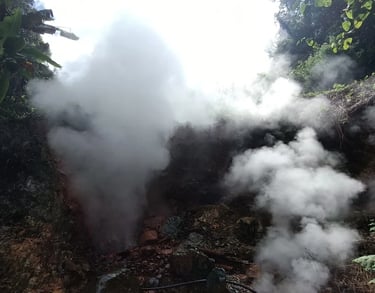 Suplai Uap: Uap panas bumi naik dari reservoir melalui batuan yang berpori (permeable soil). Suhu uap saat keluar dari tanah berkisar 95°C - 98°C.