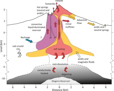 Mud Pools (Contoh: Kawah Berecek): Terbentuk di area cekungan tanah yang menampung air hujan. Uap yang naik memanaskan air tersebut hingga mendidih dan bercampur dengan tanah lempung (produk alterasi batuan), menciptakan bubur lumpur panas.