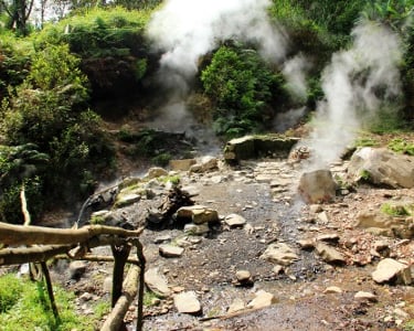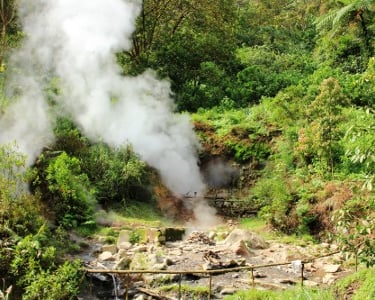 Steaming Ground (Contoh: Kawah Hujan): Uap panas naik perlahan melalui pori-pori tanah yang luas. Saat bertemu udara dingin, ia mengembun.